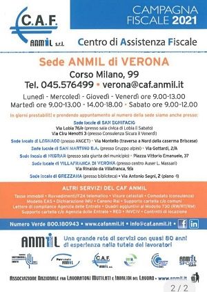 Presso la Sede Anmil di Verona sita in corso Milano, 99 Tel. 045576499 è possibile usufruire di numerosi servizi,quali quelli assistenza fiscale attraverso il Caf ANMIL e in materia previdenziale e assistenziale attraverso il patronato.