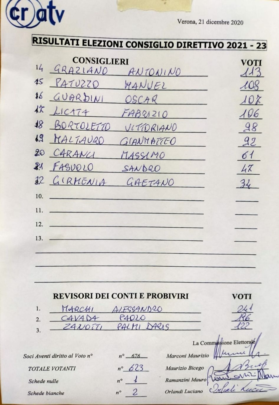 RISULTATI ELEZIONI NUOVO CONSIGLIO DIRETTIVO