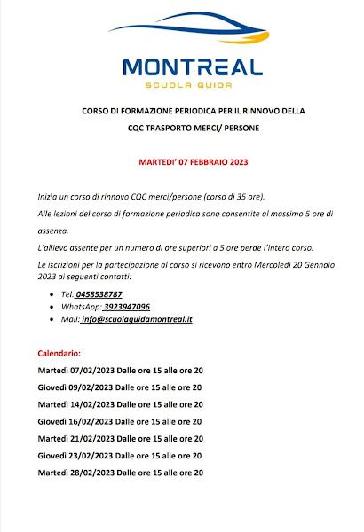 Inizia il 04-02-2023 nuovo corso formazione "CQC" in allegato ci sono le locandine con tutte le date possibili.