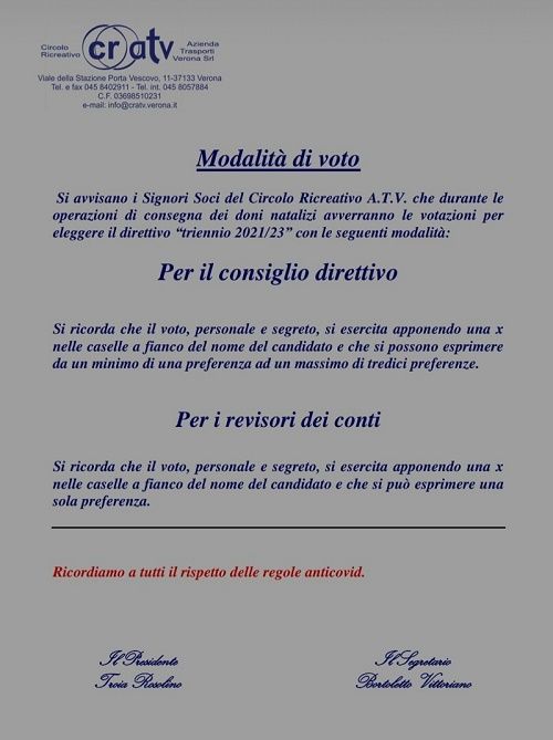 VOTAZIONI 2021/2023 E DONO NATALIZIO